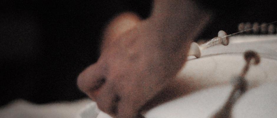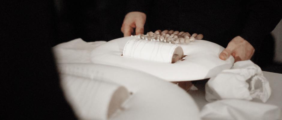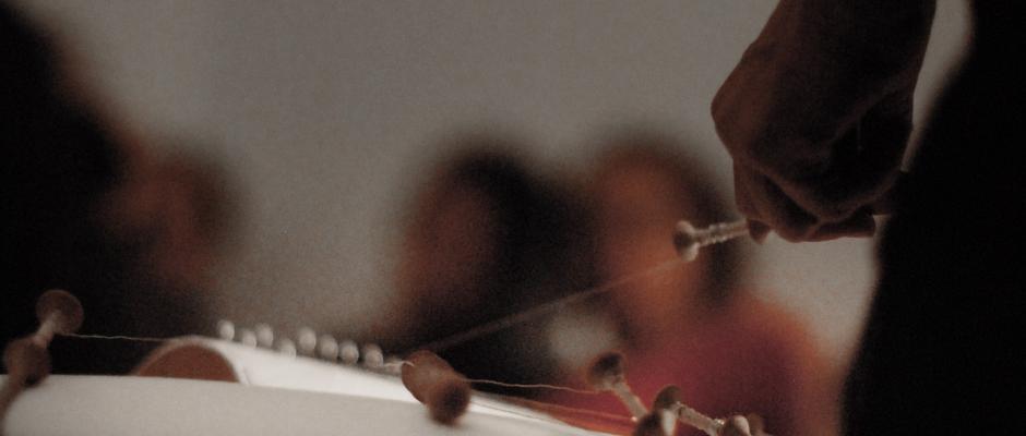 Knyppel is a collaboration between Ann Rosén and Fredrik Olofsson. With the unusual interfaces of lace pillows and embroidery hoops, they struggle to control a noisy audiovisual system. The system produces sound and graphics that are not always pleasant, and as Ann and Fredrik try to push it to their liking, an endless rabbit chase starts - a man-machine feedback loop. As with all feedback systems, it gets interesting only when there is some kind of ‘dirt’ in the feedback chain and no side wins. Here the dirt is the textile controllers and the duo’s inability to master them. They are built so that the performers just cannot react and counteract with speed, planning and precision. The performance by Knyppel highlights questions of what is fake and what is real, what is a call and what is a valid response, who or what made which sound?